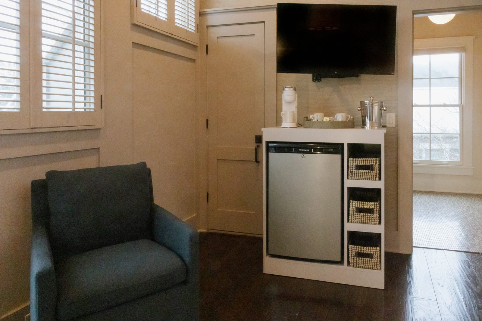 The Dogwood Suite offers a private retreat where tranquility reigns supreme. It’s the perfect spot to unwind, sip a refreshing drink and enjoy the sights and sounds of nature just outside your window.